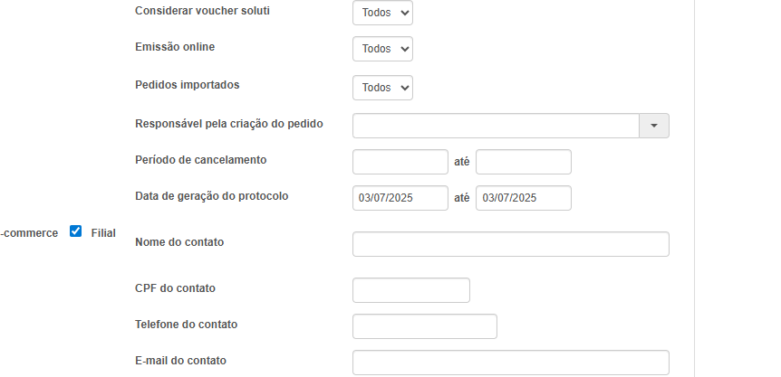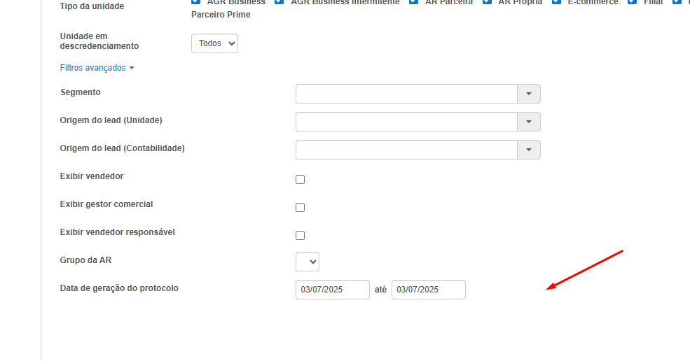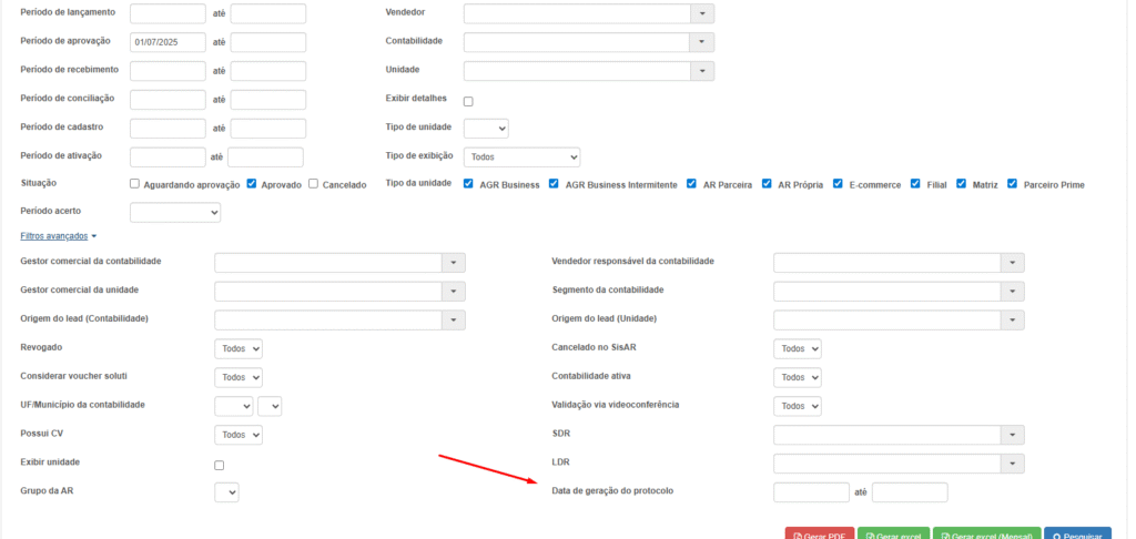 Conforme solicitado, foi criado o filtro de data de geração do protocolo nas telas de pedido venda , pedidos por unidade , pedidos por indicação parceiro: