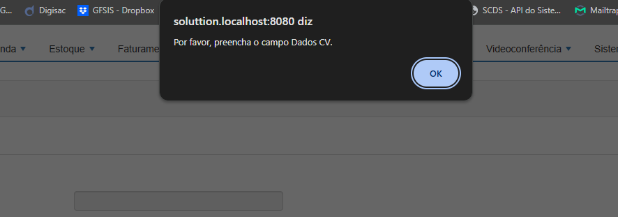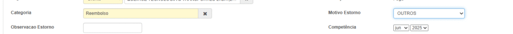 O campo “observações estorno” só exibirá se o “motivo estorno” for “OUTROS”