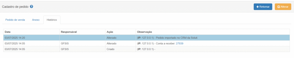 Agora com o mesmo exemplo do pedido o sistema faz, primeiro contabilidade, depois vendedor, e por último o ponto de atendimento.