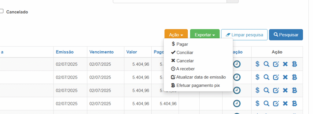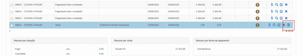 Esse filtro irá exibir todos os pagamentos em lote feitos para o Sicoob.