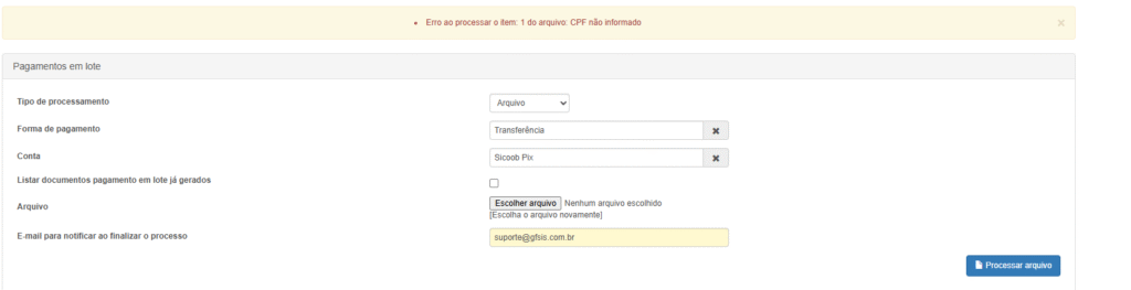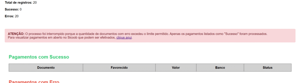 Foi adicionado também o mapeamento de erros ao processar o pagamento em lote via arquivo: