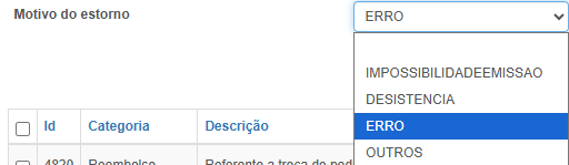 Caso o “outros” seja selecionado aparecerá o novo campo “observações estorno”
