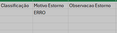 E também adicionado as colunas “motivo do estorno”, “observação estorno” no excel.