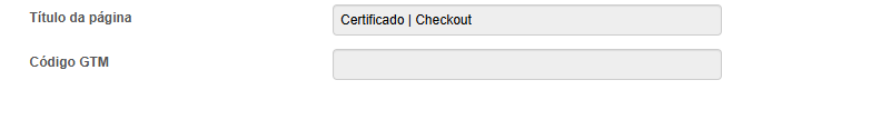 Criado os campos título da página e o código do GTM para trakeamento do chekout nos eventos de compra de certificado.