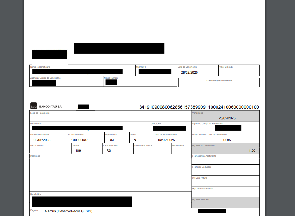 Ticket: 62717 – Implementação do boleto ITAÚ V2 para o GFSIS CONTROLE #