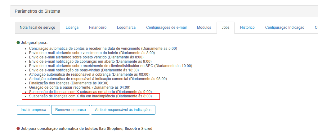 Adicionado um novo JOB ao sistema que rodará todos os dias às 8 da manhã, que suspende contratos que estiverem inadimplentes a mais de X dias.