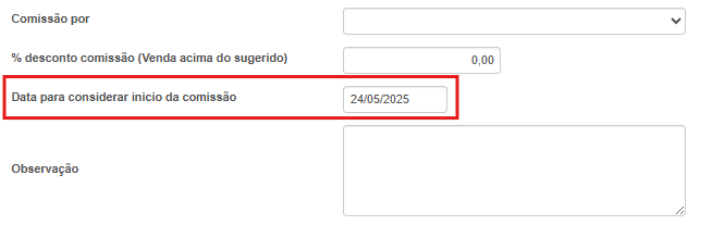 Este campo restringe os acertos tanto do comissionamento convencional quanto os registros do Ajuste de comissão baseado na data de cadastro.