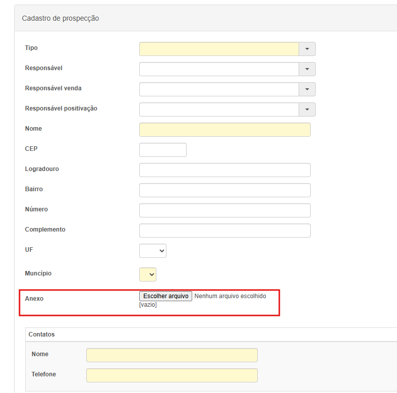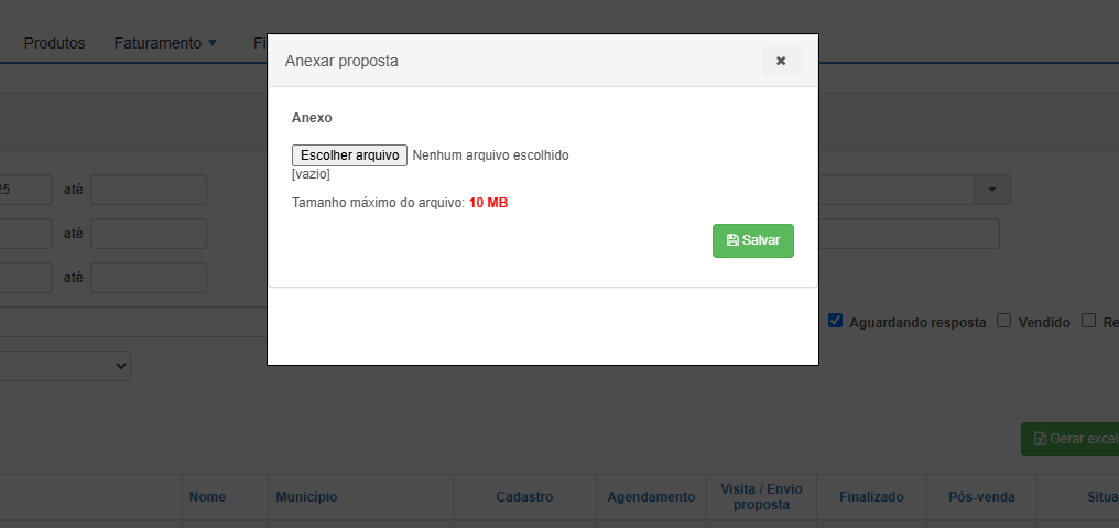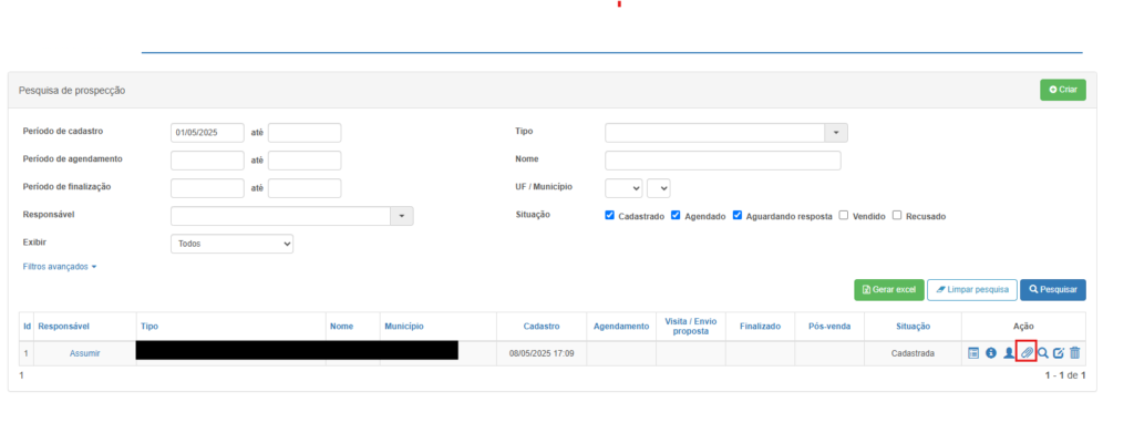 Foi adicionado à tela de Prospecção de parceiro, um campo para anexar arquivos. Com um botão na listagem:
