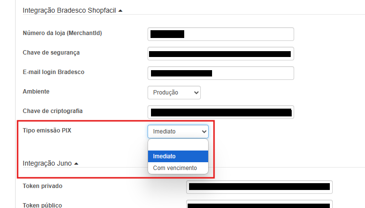 Adicionado o tipo de emissão do PIX do Bradesco. caso use o Imediato, a cobrança ocorrerá com expiração de 24h.