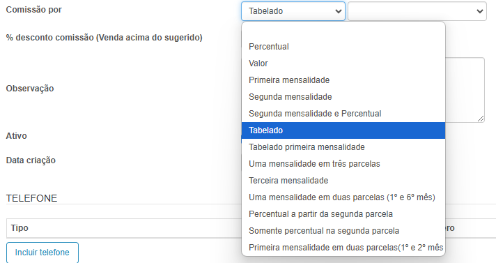 - Tabelado – Por porcentagem, faz a porcentagem sobre o valor total do faturamento, como se estivesse ganhando sobre as 12 mensalidades, ou o valor fixo.