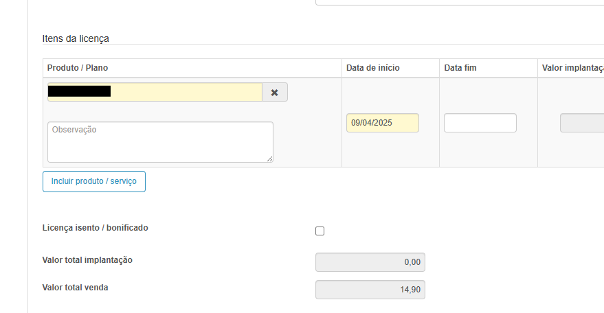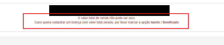 Ticket: 69714 – Valor de venda do distribuidor zerado não deixa salvar a licença sem a marcação “licença isenta / bonificado” #