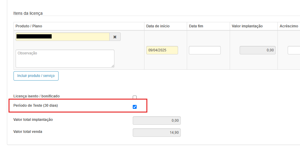 Ticket: 68839 – Erro no faturamento de licenças devido a marcação de licenças teste. #