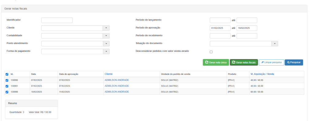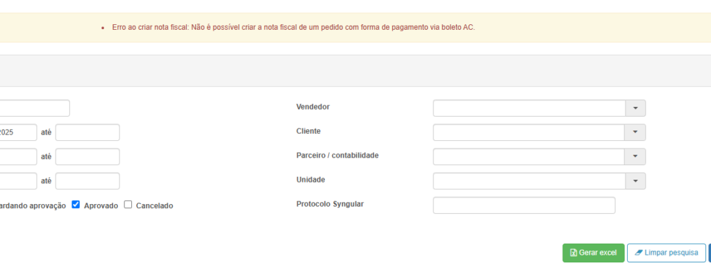Com isso em mente, realizei um ajusta na tela de Gerar notas fiscais, para não exibir pedidos que usem desse modelo.