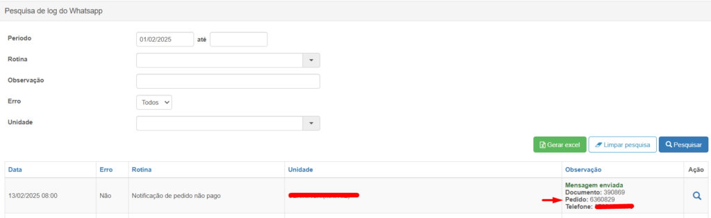 Ticket: 68251 – Incluir o identificador do pedido no log de mensagens de wpp da rotina “notificação de pedido não pago” #