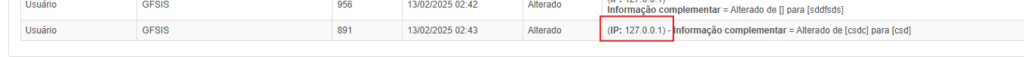 GFSIS – Incluir o IP da máquina no log das alterações do sistema (Replicar no controle) #