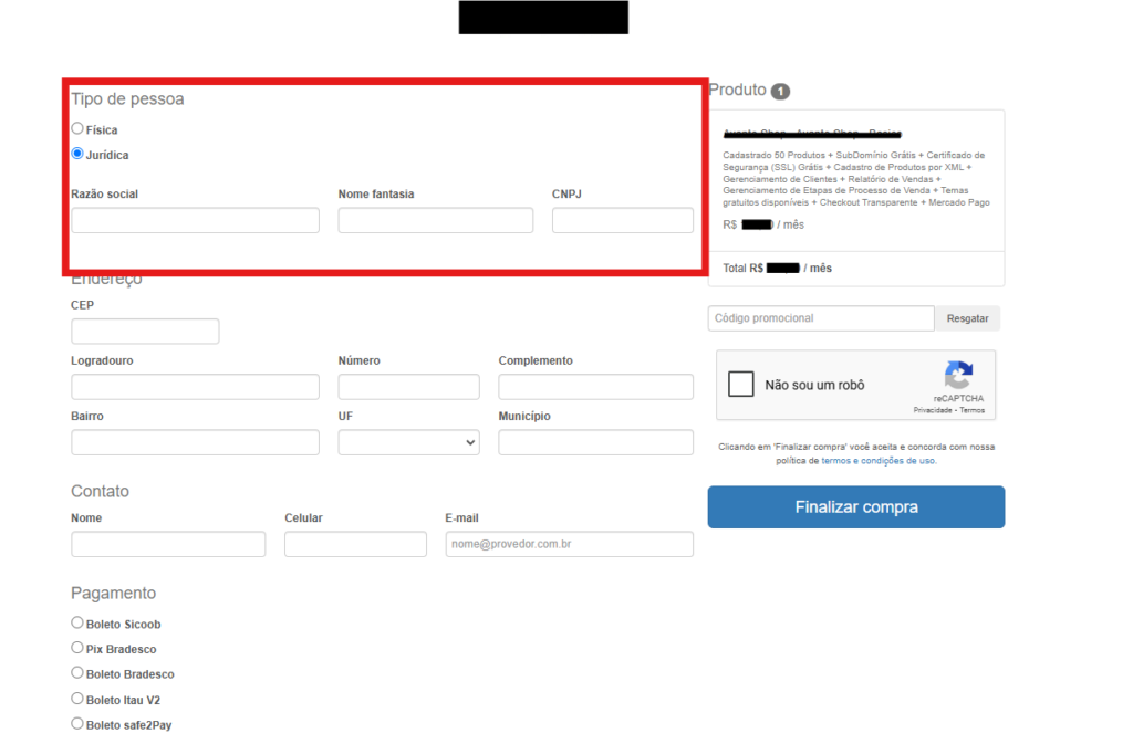 Ticket: 70160 – Link de compra do site com erro ao selecionar cartão de crédito #