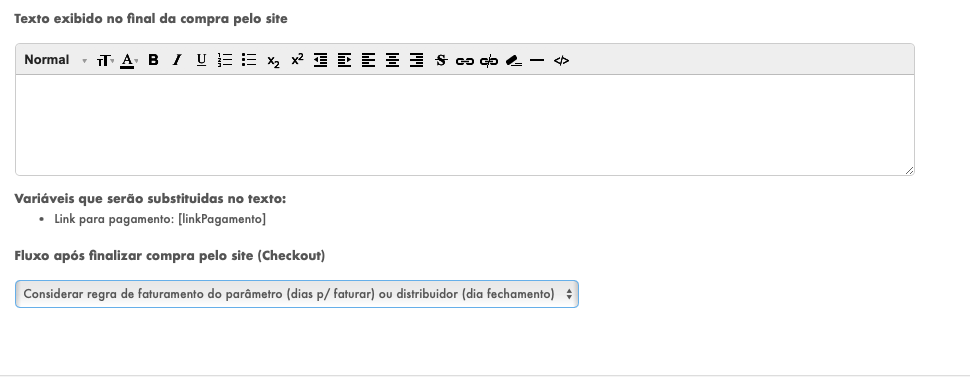 Foi incluido o campo para incluir na mensagem após finalizar a compra do link de pagamento, o cliente escolhe a forma de pagamento, cartão, boleto, pix e após finalizar a compra deve ser cadastrado o texto que vai exibir após a compra indicando que o cliente comprou e que deve realizar o pagemento agora clicando no link ou botão (o ideal seria criar um botão em html para ficar mais claro para o cliente).