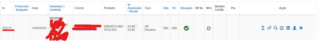 Portanto, o ícone de “pago” não apareceu devido ao fato que o documento estava pago, fora cancelado e depois “pago” novamente. Recomenda-se utilizar o processo de troca para esses casos, com o intuito de não burlar/invalidar quaisquer lógicas do sistema.