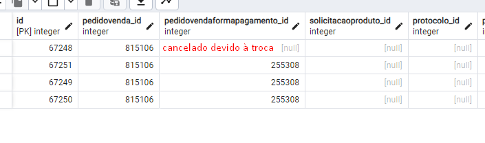 Para garantir a visualização correta dos ícones de Boleto/Cartão e PIX durante o cancelamento e os demais cálculos do sistema, o contas a receber sempre busca o documentoOrigem associado ao ser cancelado. Dessa forma, o vínculo entre o documentoOrigem e os campos protocolo_id, pedidovendaformapagamento_id e protocoloformapagamento_id é intencionalmente desfeito (definido como null).