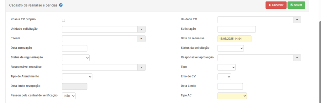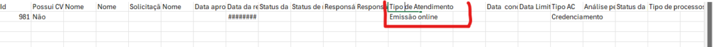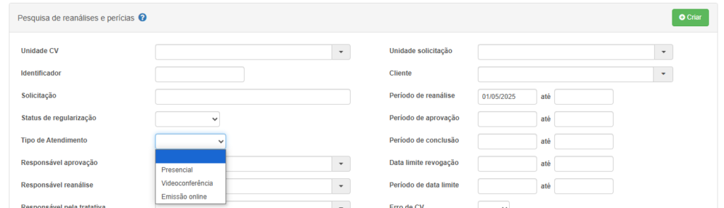 Caso “videoconferência” estivesse como nulo e a reanalise foi após 01/01/2025, o campo Tipo de atendimento foi para “Emissão online”.