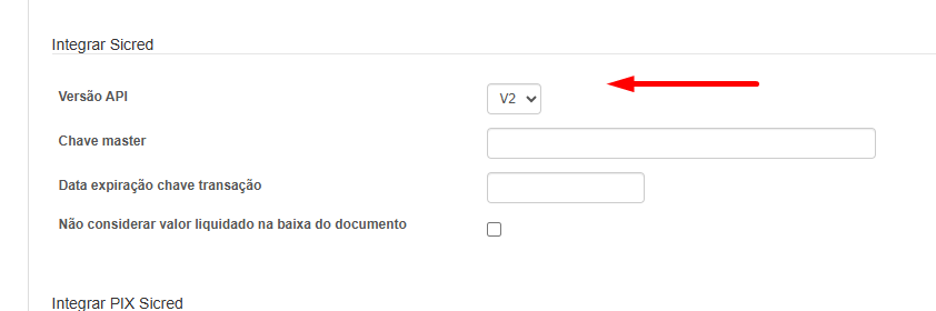 • Os novos campos da integração V2 aparecerão no cadastro da conta deste que na conta seja informado o ambiente sicredi V2 ou no cadastro da empresa.