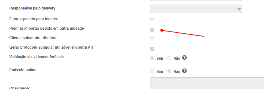 Realizei um ajuste no processo de integração entre AR / AC, na criação de pedidos, para enviar junto o campo Permitir importar pedido em outra unidade