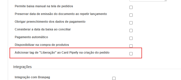 OBS 2: Para identificar se um pedido é de liberação, foi criado um campo no cadastro da forma de pagamento, por favor configurar em seu sistema para as formas de pagamento que usa com o intuito de liberação.