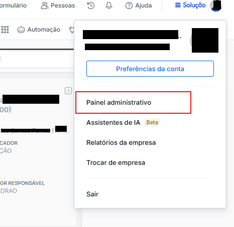 1º Em um acesso de “Super Administrador” na Pipefy, vá até “Painel administrativo“ e depois em