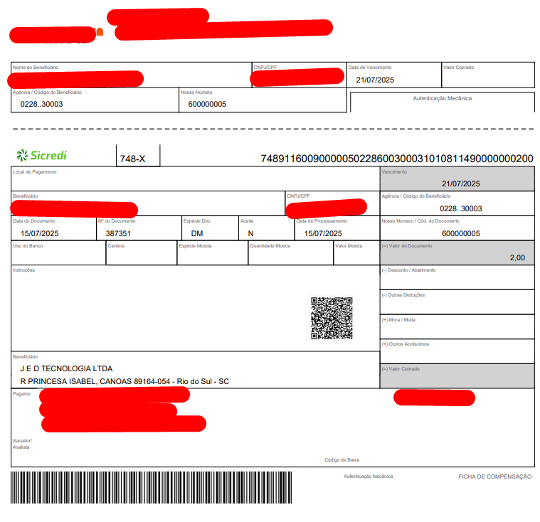 Foi realizada a integração Sicredi V2 para boletos conforme solicitado.