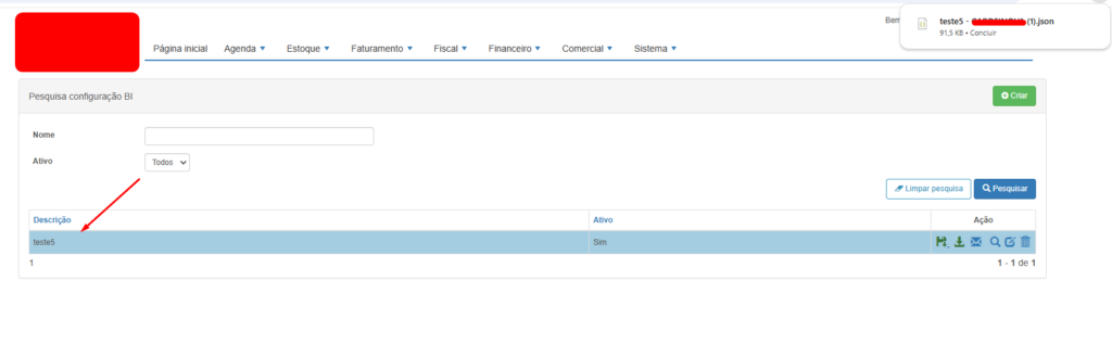 Foi ajustado para ao realizar o download do JSON, puxar o nome dá descrição do BI: