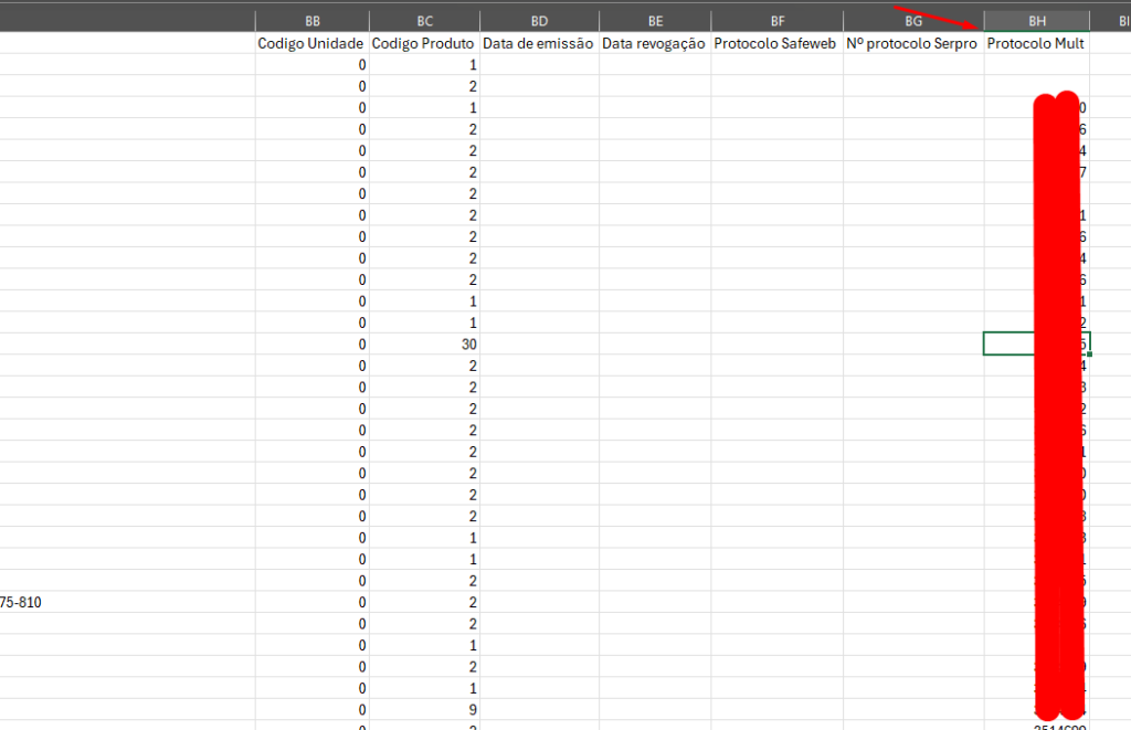 Ticket: 65902 – Protocolo Mult (Ac Serpro) no excel de pedidos #